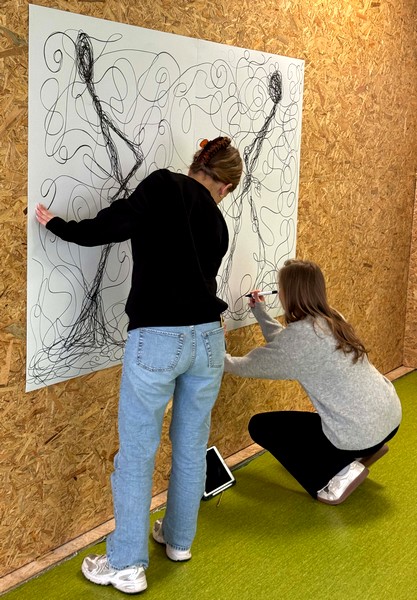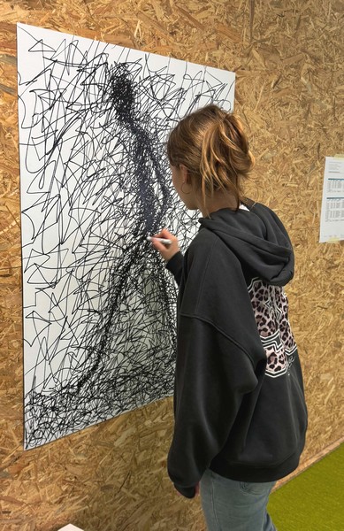 Wie sieht „Unruhe“ aus? Wie fühlt sich „Isolation“ an – als Strich auf Papier? Mit dicken Filzstiften sind ganz unterschiedliche, ziemlich expressive Linien entstanden 👀.
