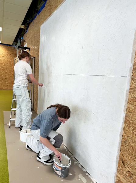 Zum Abschluss haben wir unsere Motive noch auf vorbereitete Wandflächen übertragen – also vom Blatt direkt in den Raum.