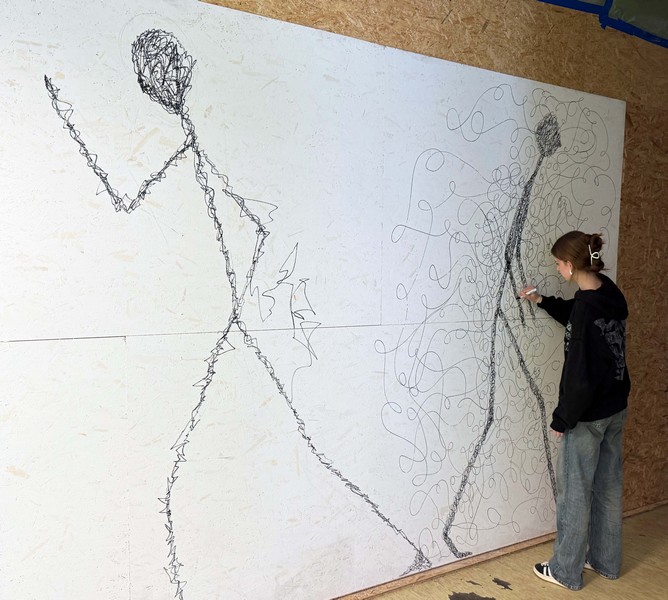 ➡️ Statt direkt Figuren zu zeichnen, haben wir mit Linien experimentiert: