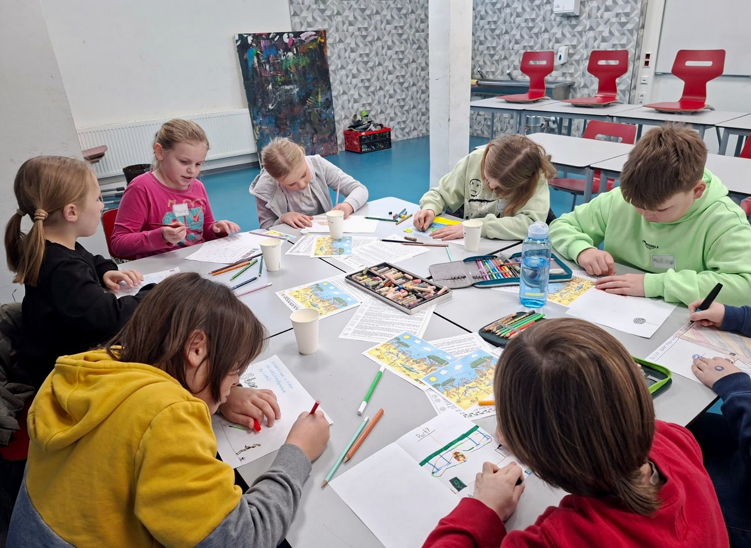 Während die Grundschüler Erfahrungen zum Alltag an der IGS sammeln konnten, hatten ihre Eltern die Gelegenheit, sich während einer Führung das Schulprogramm erläutern zu lassen. Zeit für individuelle Fragen nahm sich die Schulleitung im Anschluss in der gemütlichen IGS-Cafeteria. Der spannende Vormittag endete für alle Beteiligten mit einem gemeinsamen Gruppenbild auf dem zukünftigen Schulhof.