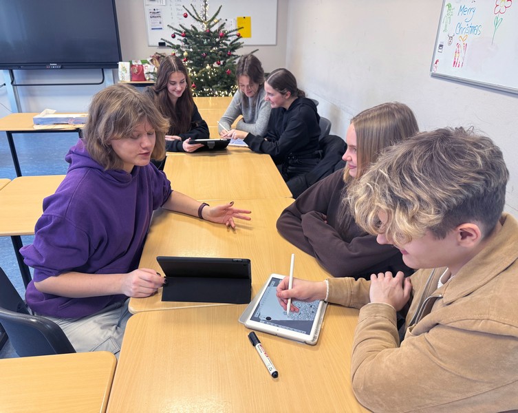 🖌️ Zu Beginn arbeiteten wir mit einfachen Strichfiguren. Jede*r suchte sich Bewegungsposen aus und verwandelte sie am Tablet in kleine Comicfiguren. Wir fügten Speedlines hinzu, drehten die Figuren, puzzelten sie zusammen und tauschten ständig die Tablets, bis kleine Gruppen-Wimmelbilder entstanden – chaotisch, aber richtig cool.
