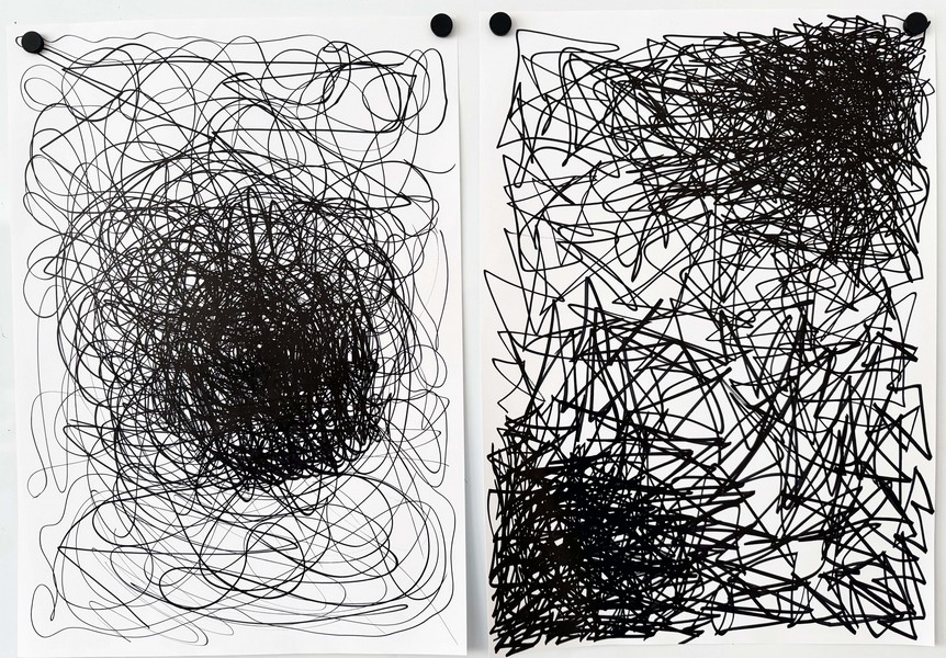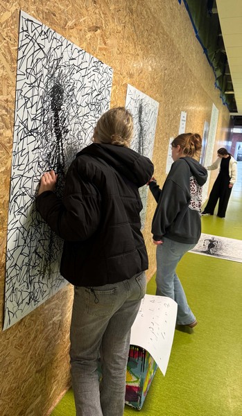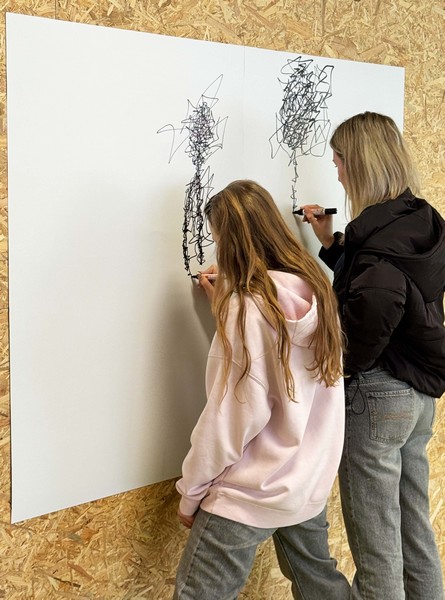 Wie sieht „Unruhe“ aus? Wie fühlt sich „Isolation“ an – als Strich auf Papier? Mit dicken Filzstiften sind ganz unterschiedliche, ziemlich expressive Linien entstanden 👀.