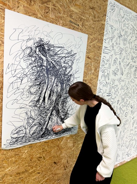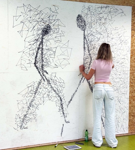 ➡️ Statt direkt Figuren zu zeichnen, haben wir mit Linien experimentiert:
