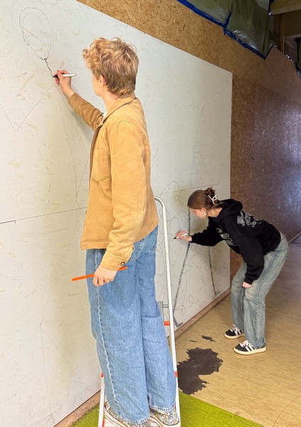Zum Abschluss haben wir unsere Motive noch auf vorbereitete Wandflächen übertragen – also vom Blatt direkt in den Raum.