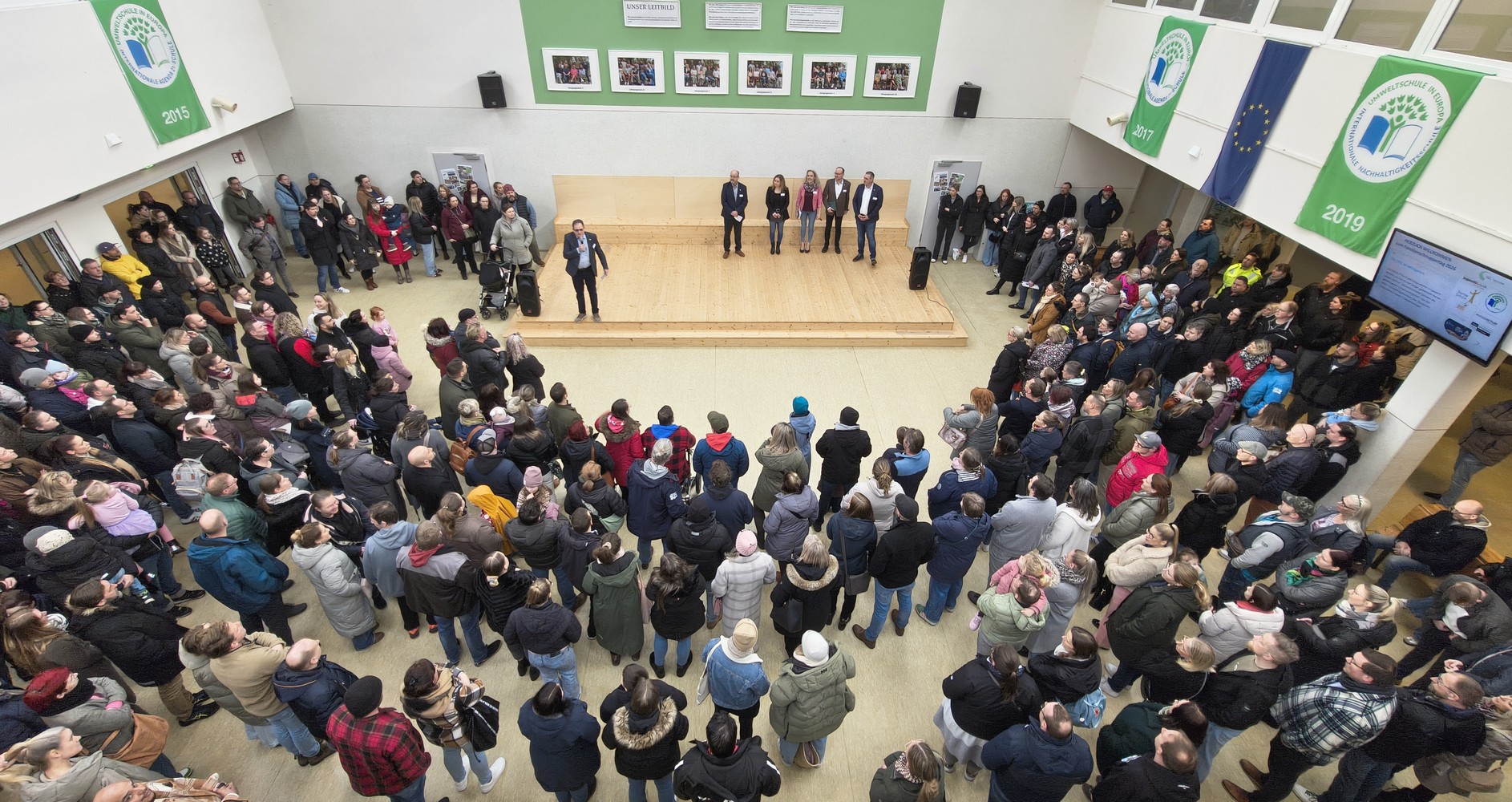 Während die Grundschüler Erfahrungen zum Alltag an der IGS sammeln konnten, hatten ihre Eltern die Gelegenheit, sich während einer Führung das Schulprogramm erläutern zu lassen. Zeit für individuelle Fragen nahm sich die Schulleitung im Anschluss in der gemütlichen IGS-Cafeteria. Der spannende Vormittag endete für alle Beteiligten mit einem gemeinsamen Gruppenbild auf dem zukünftigen Schulhof.